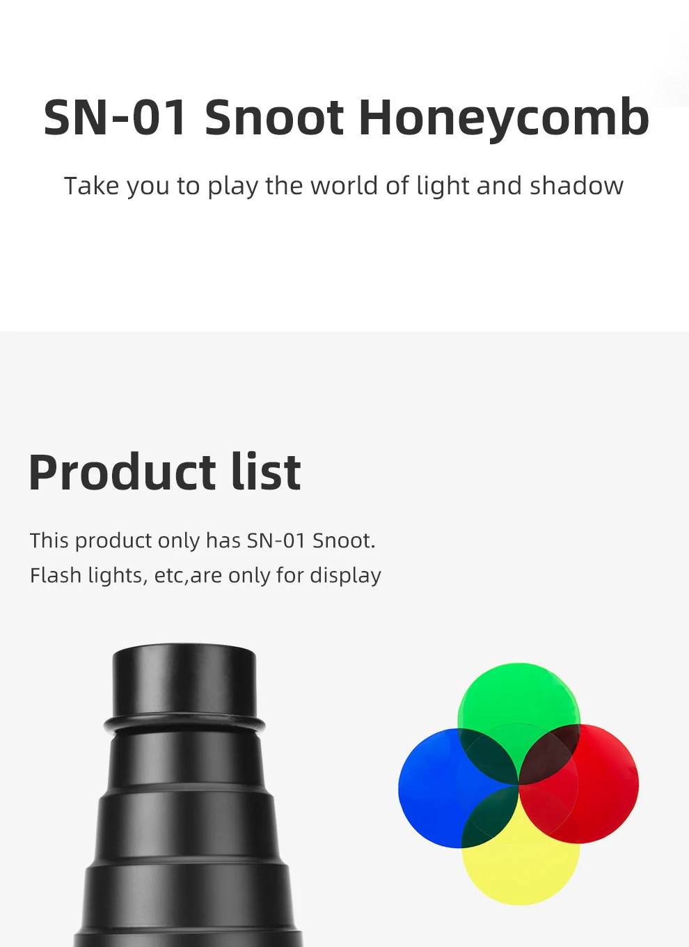 Благодаря вспышке Snoot, чтобы избежать нежелательных эффектов проекционного экрана, особенно в лице фоновой беспорядочной съемки, Snoot очень важен, иногда для того, чтобы достичь цели контроля фона или переднего плана светильник, освещающая только Snoot предварительно определенная цель съемки