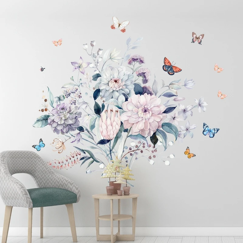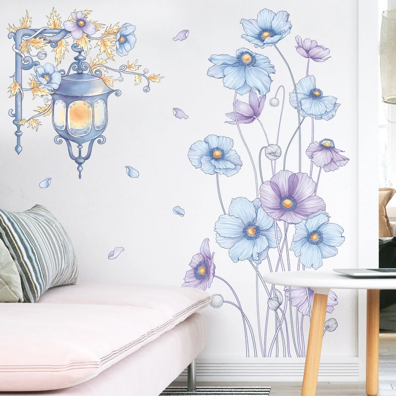 Синие фиолетовые цветы наклейки на стены DIY обои стикер уличный св...