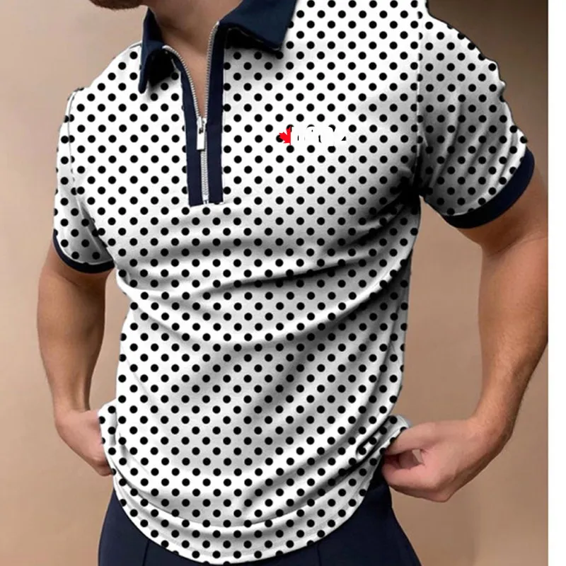 Мужская Летняя трикотажная жаккардовая рубашка-поло на молнии, роск...