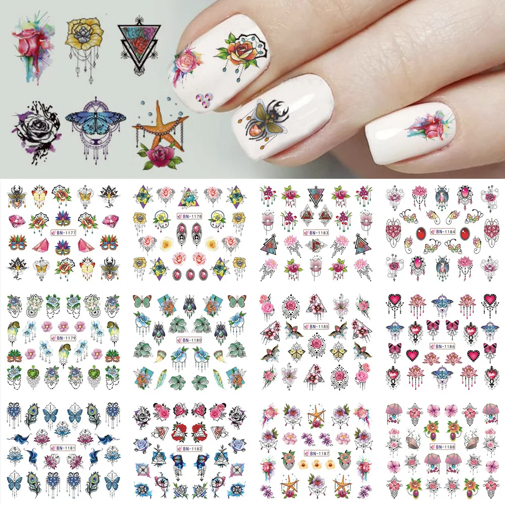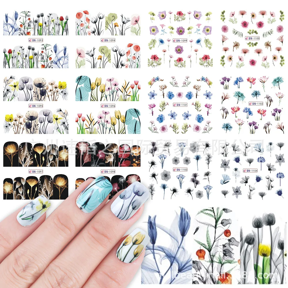 12 штук набор смешанных цветов геометрический дизайн ногтей водный переводной цветок листья кленовый лист Леопардовый принт Маникюр Doc