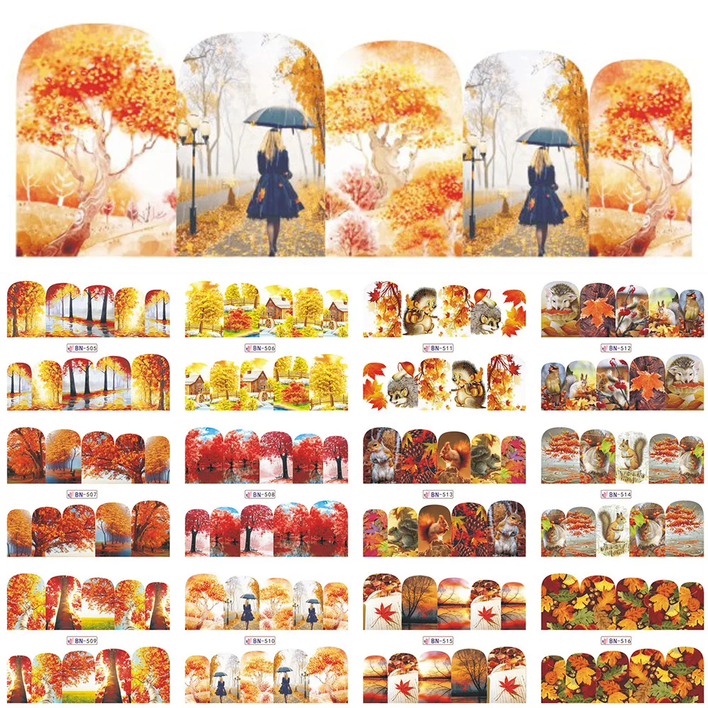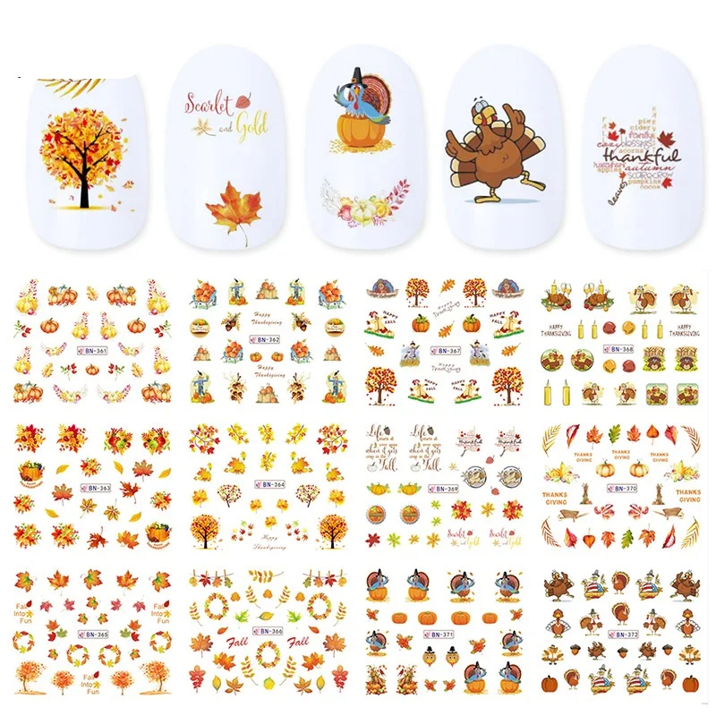 12 шт. Смешанная Осенняя наклейка на ногти водная наклейка на День ...