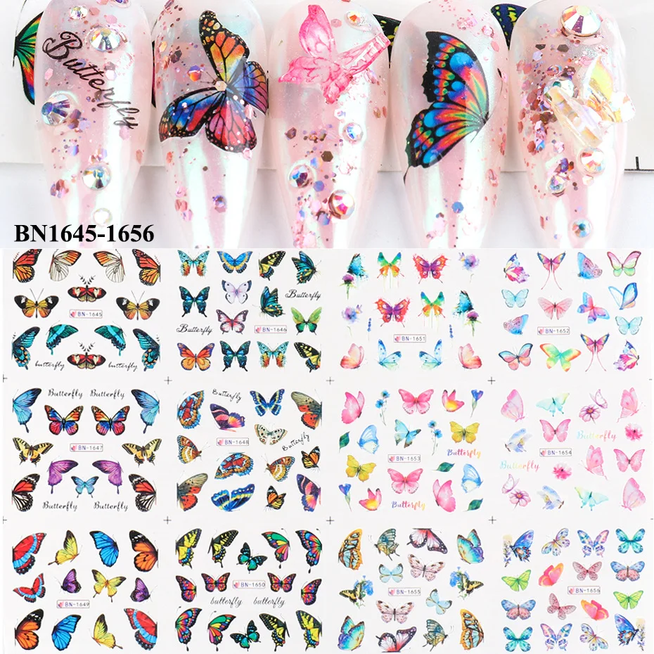 Набор стикеров для ногтей, 12 дизайнов, цветы, кленовый лист, Леопа...