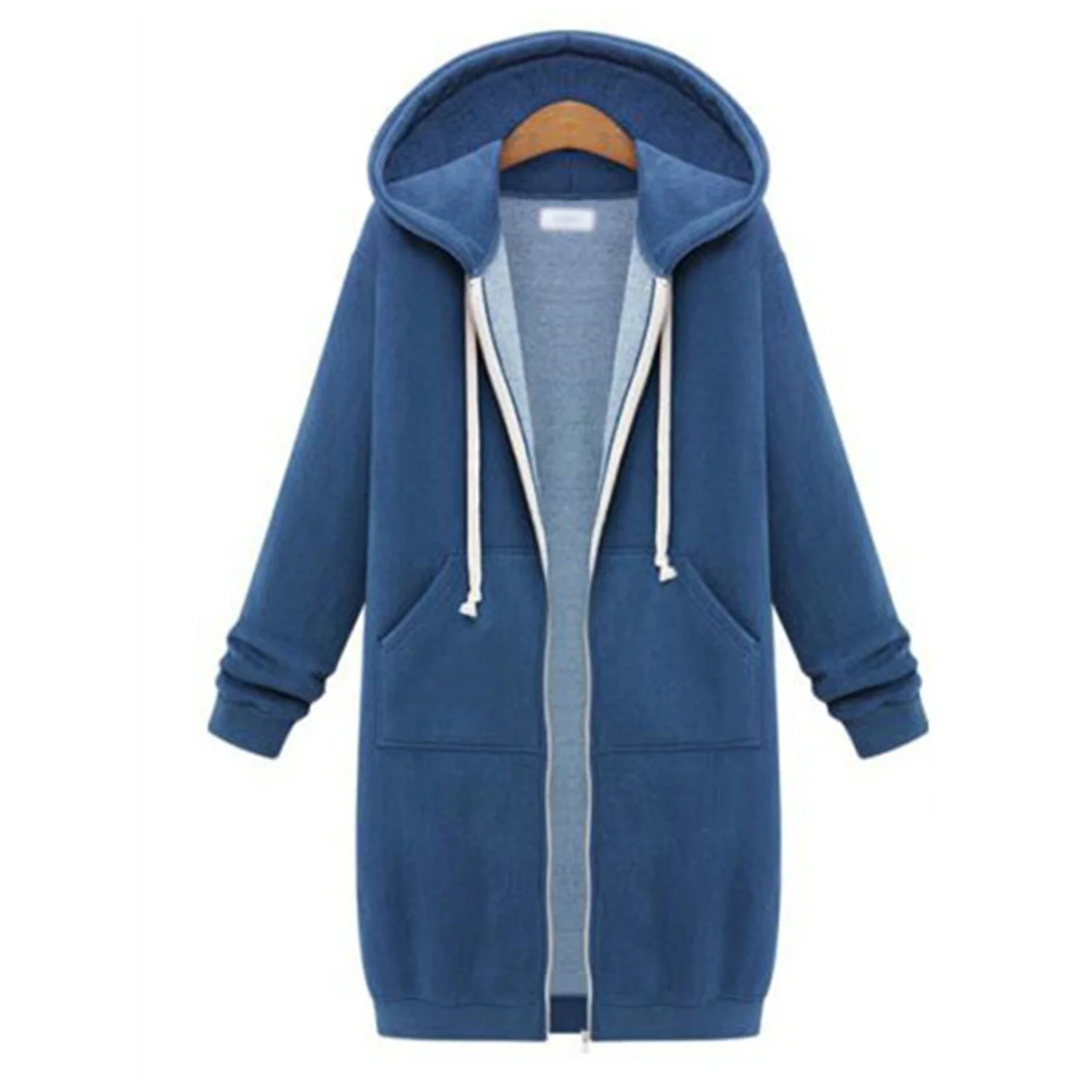 Повседневные осенние женские длинные толстовки Толстовка пальто на ...