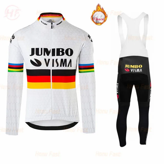 Мужская Зимняя Теплая Флисовая футболка с длинным рукавом Jumbo Visma 2021