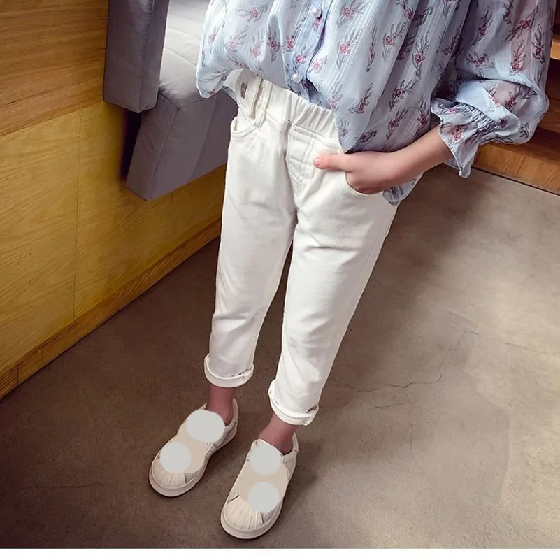 Джинсы для девочек, белые, синие, черные демисезонные детские брюки, джинсовые брюки для малышей, детские брюки, одежда для маленьких девочек, брюки