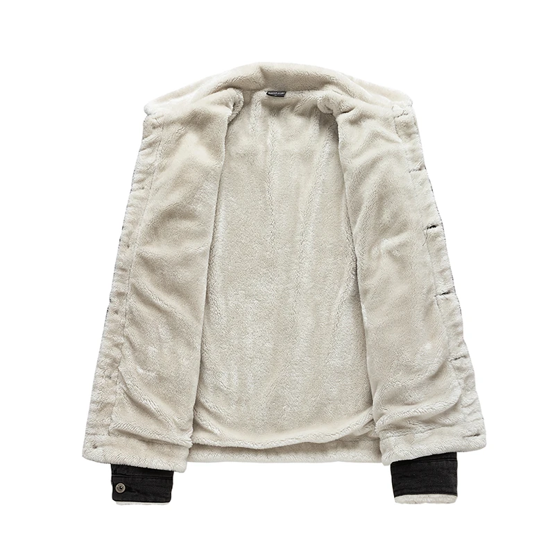 Мужские зимние джинсовые куртки, теплая флисовая Толстая Повседневн...