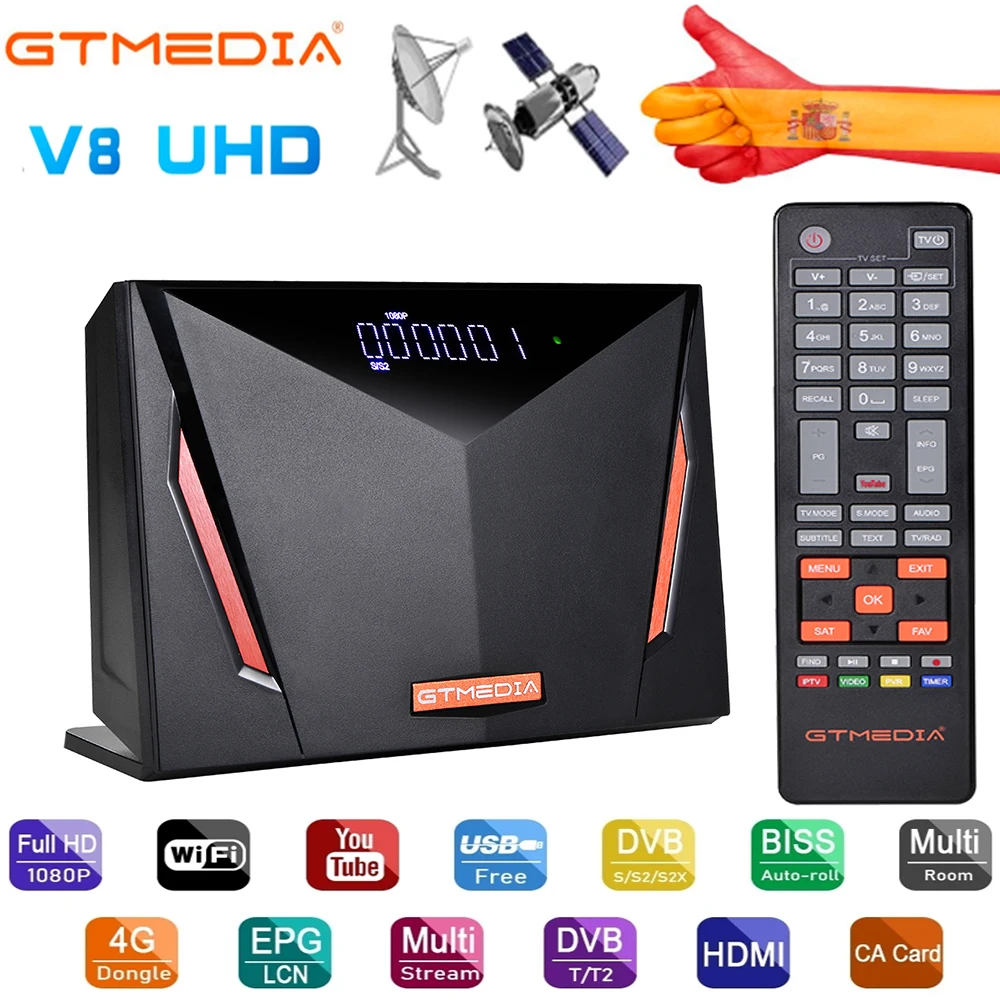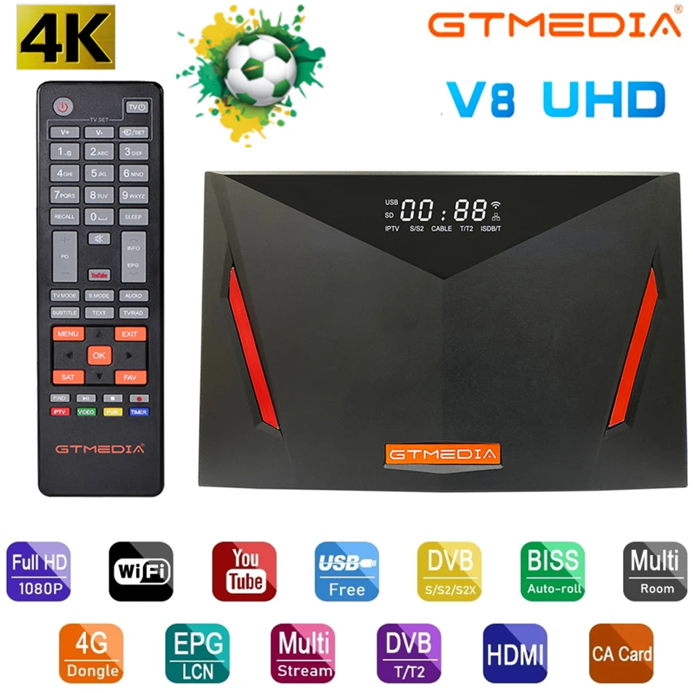 Спутниковый ТВ-приемник gt media v8 uhd 4k TV box DVB S2 T2 кабель H.265 4K Ultra HD встроенный Wi-Fi C-Cline поддержка Испании CS