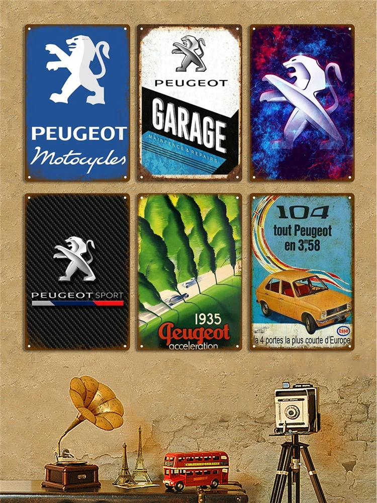 Металлическая табличка для Peugeot, металлический плакат, Оловянная...