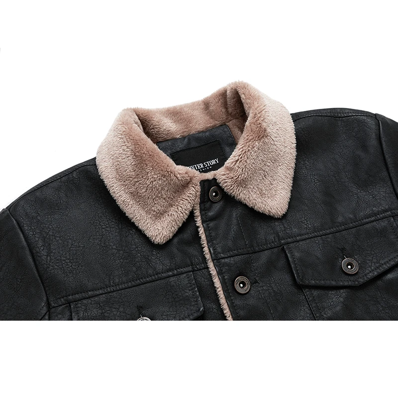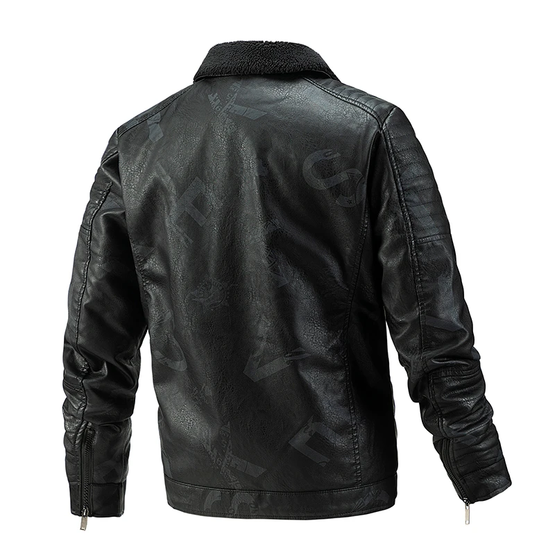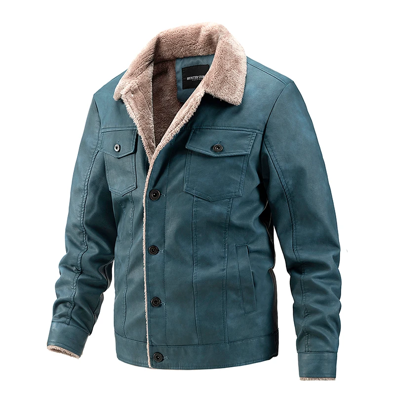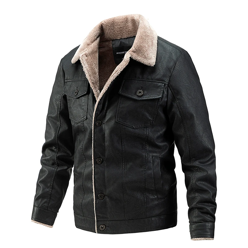 Мужская кожаная куртка на флисе, теплая Повседневная ветрозащитная ...