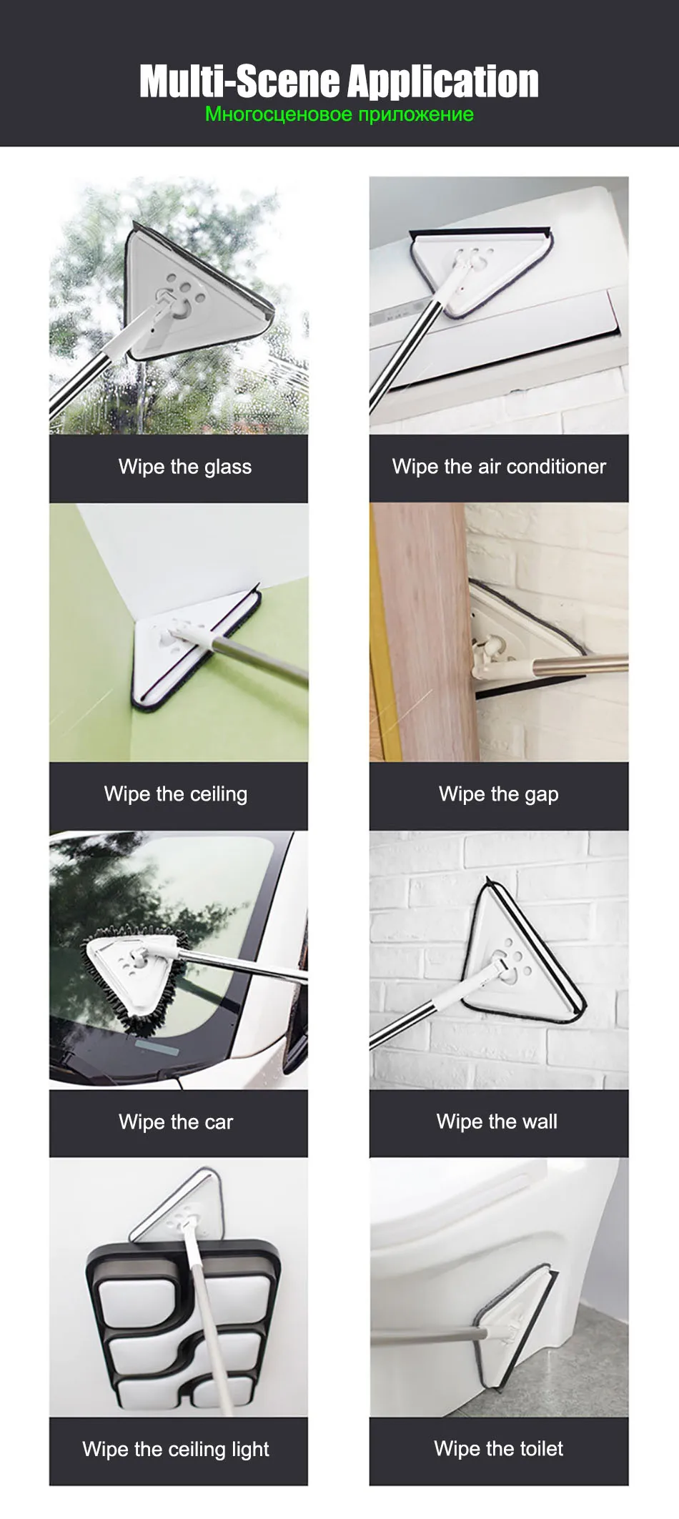 Швабра имеет вращение на 360 ° и практичный дизайн на 180 °, он используется для очистки, не оставляя мертвых углов, эта Швабра отлично подходит для журнального столика, дивана и кровати, настенных мертвых углов, лестниц, И т. д.