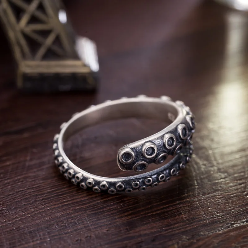 Высококачественный 925 Стерлинговое Серебро, осьминог-кальмар, фотоэлемент для мужчин и женщин, готический винтажный Регулируемый фотоэлемент для вечевечерние