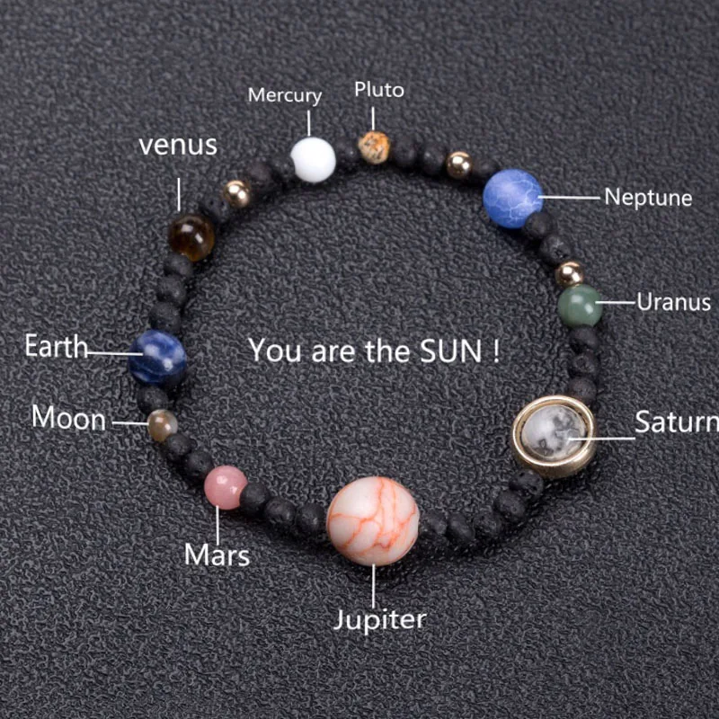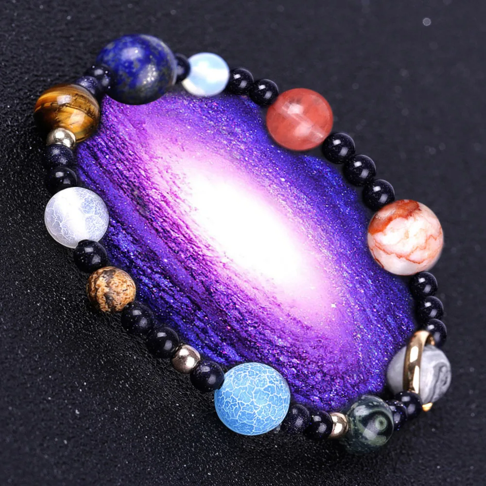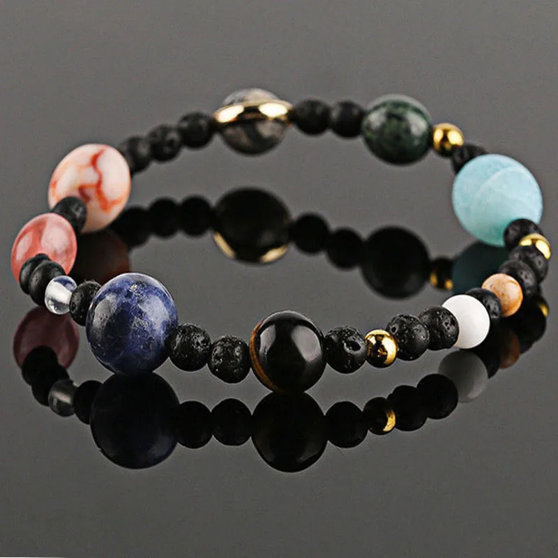 Браслет из натурального камня для женщин и мужчин, украшение с изображением Галактики, солнечной системы, Вселенной, девяти планет, звезд, земли, Луны, подарок