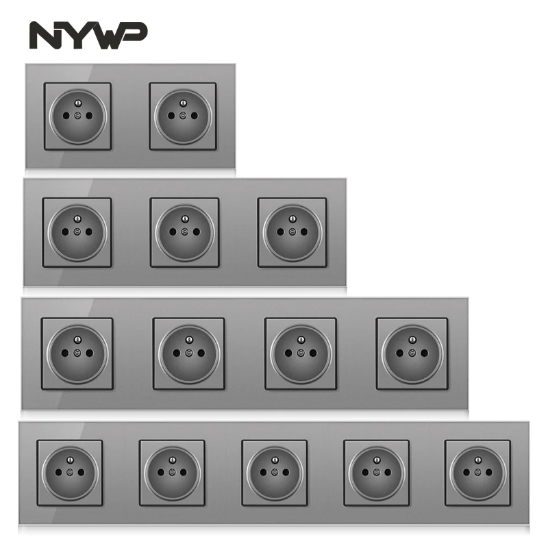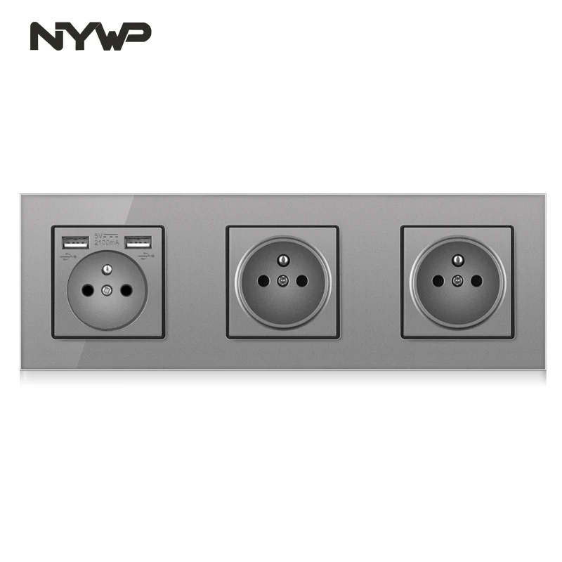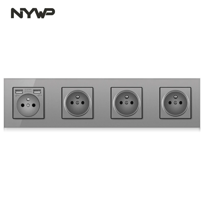Настенный многоканальный источник питания разъем заземления, три или четыре серых стеклянных панели, 16 А, французский стандарт, настенный usb-источник питания