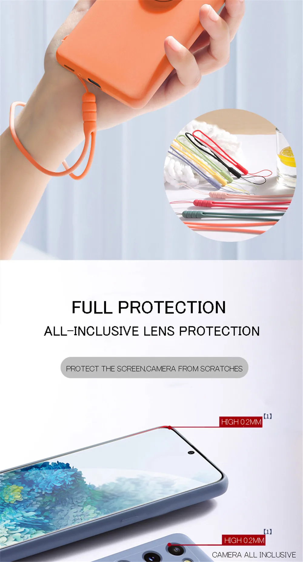 Чехол для телефона из жидкого силикона с ремешком на руку и кольцом...