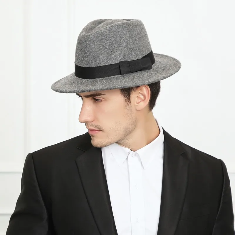 Шляпа-федора Мужская шерстяная, с широкими полями, Классическая