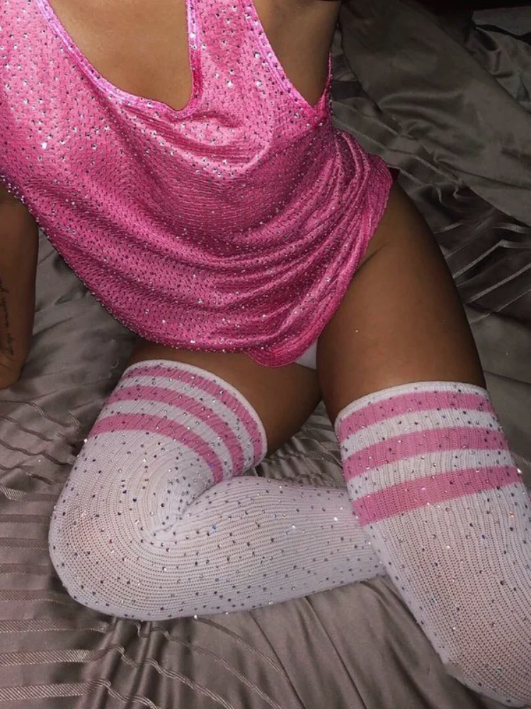 2022 Amazon хорошо продаваемые женские блестящие стразы чулки сексуальные длинные носки над искусственными волосами