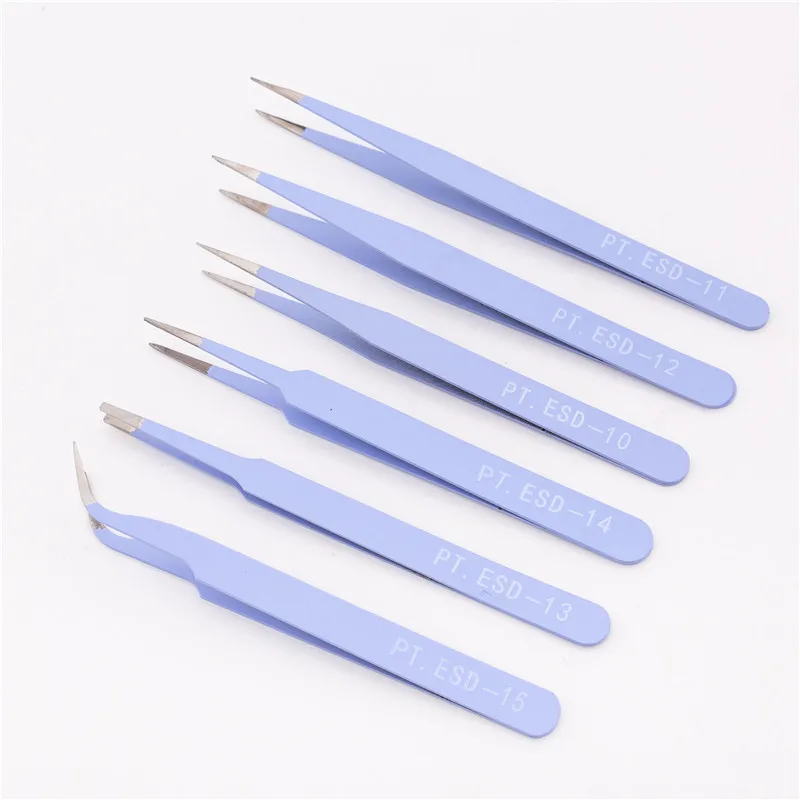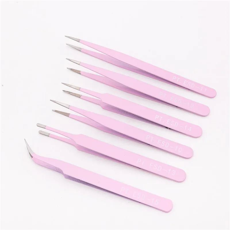 Набор антистатических пинцетов для ресниц 6 шт.компл., прецизионные изогнутые прямые многофункциональные инструменты для ремонта из нержавеющей стали ESD