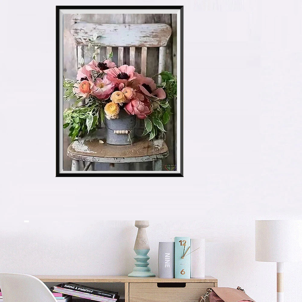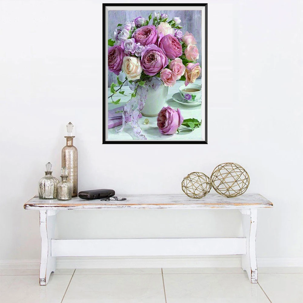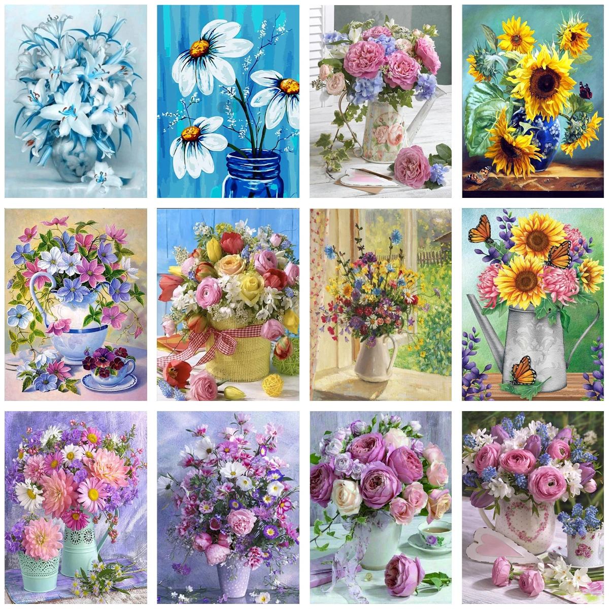 Картина из страз 5D "сделай сам", Цветочная композиция, ваза, вышив...