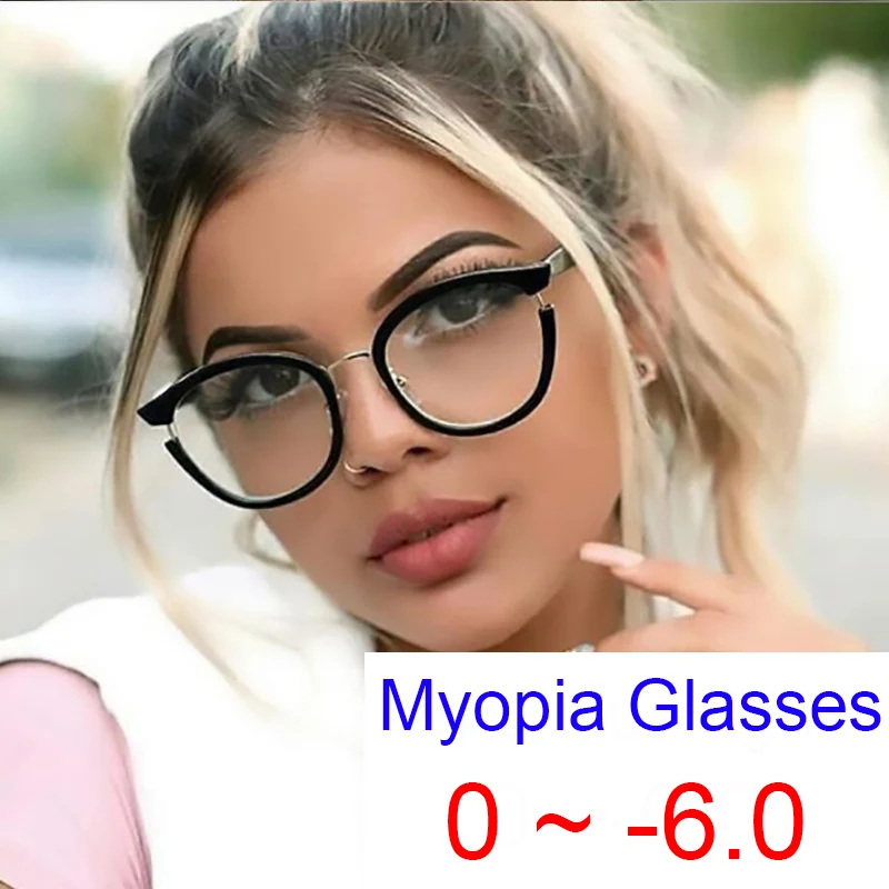 Оптические очки для близорукости для женщин, прозрачные очки кошачий глаз в стиле ретро с защитой от сисветильник света, очки по рецепту для близорукости от 0 до-6,0