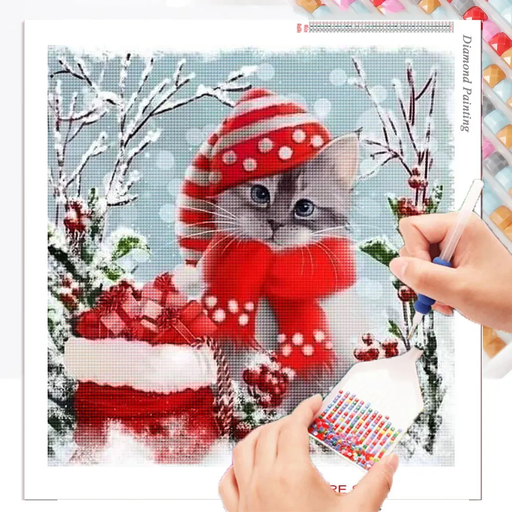 Алмазная 5D живопись сделай сам, картина с изображением кошки, моза...