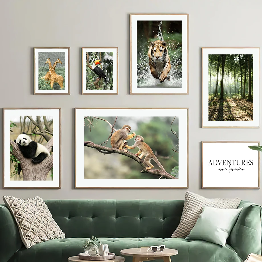 Настенная картина с изображением леса, тигра, слона, жирафа, тукана, оленя, панды, постеры и принты на холсте в скандинавском стиле, настенные картины, декор для детской комнаты icon star icon star icon star icon star icon star