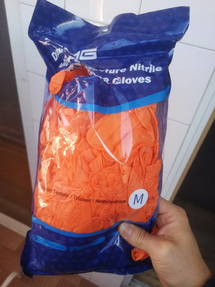очень хорошие, плотные перчатки! чувствуется, что не дурацкий тонюсенький латекс. идут четко размер в размер и не растягиваются при работе, поэтому некоторым возможно стоит взять на размер больше. у меня s размер, перчатки впору конечно, но наверное в следующий раз возьму на размер больше. пришли быстро