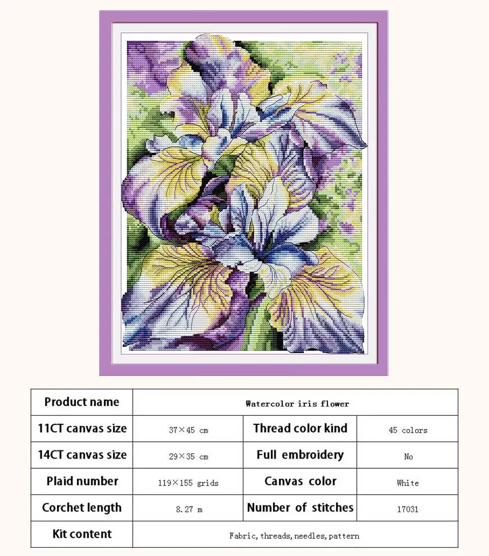 Цветок ириса Счетный крест Наборы печатная ткань для вышивания 11CT...