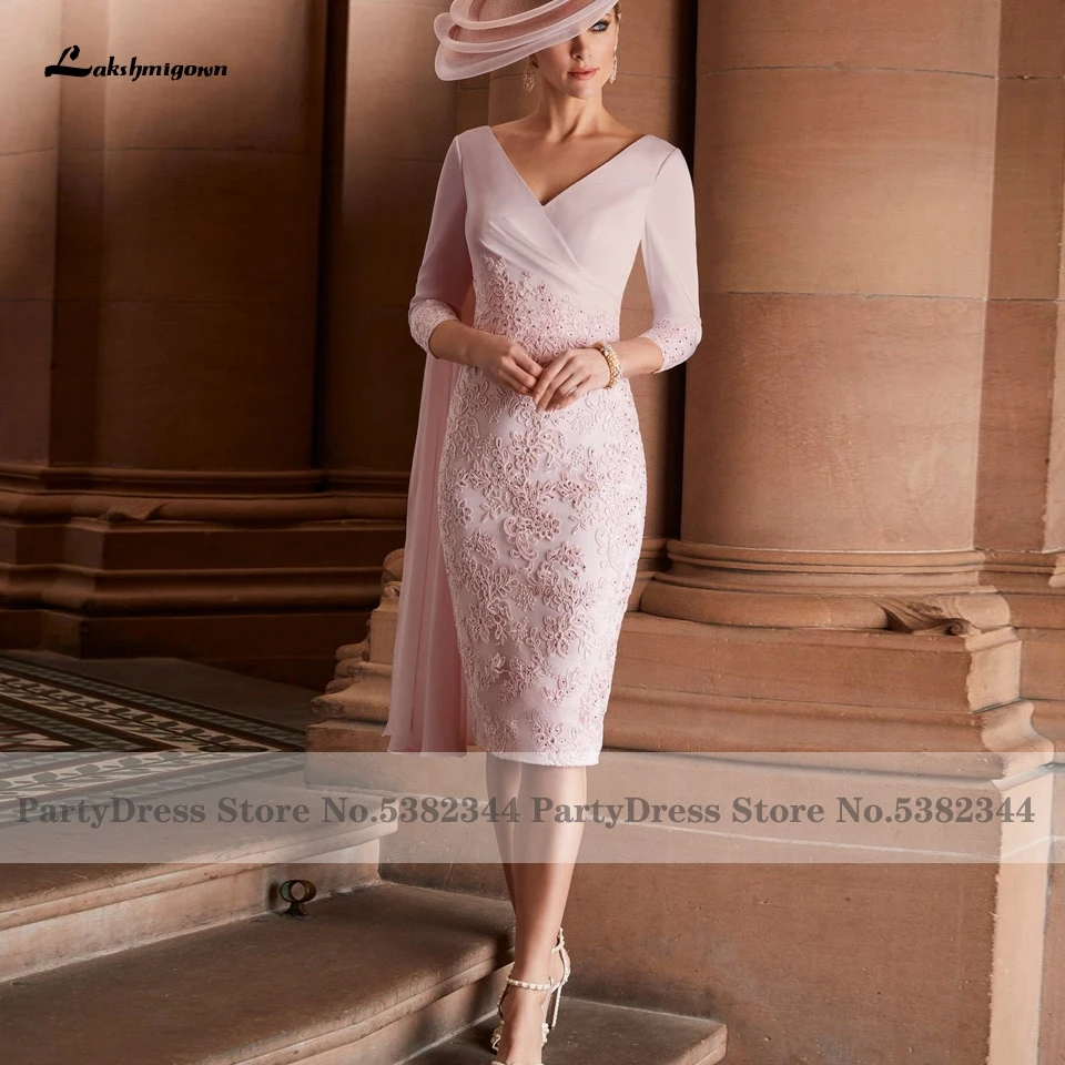 Женское платье-футляр lakshmodress, розовое элегантное платье для матери невесты с кружевной аппликацией и бисером, 2022