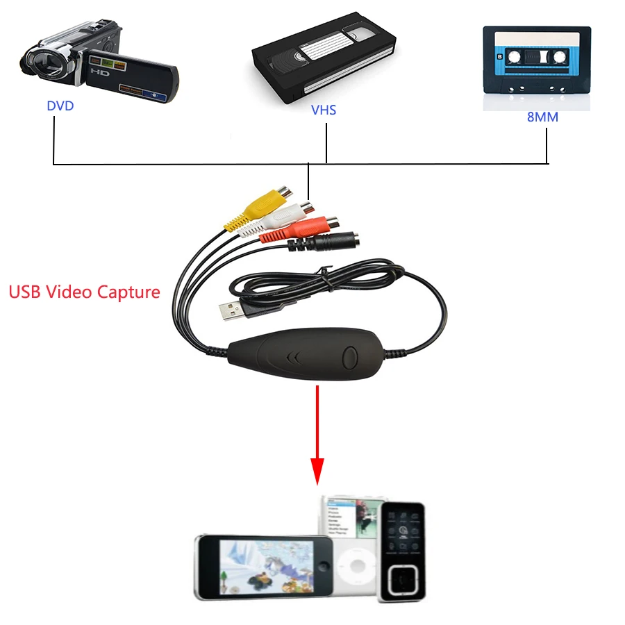 Устройство захвата аудиовидео EZCAP172, USB, преобразование аналогового видео с VHS 8 мм, видеокамера, записывающее устройство, DVD-плеер, поддержка Win7810