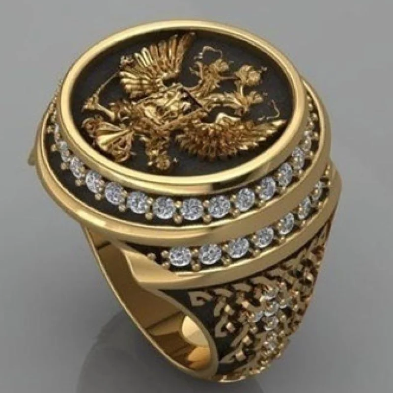 Мужское кольцо золотого цвета с двумя головами и орлом, Дух Империи...