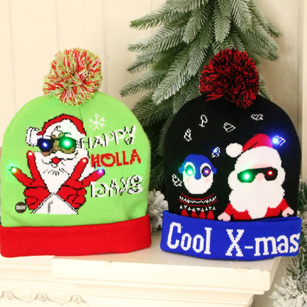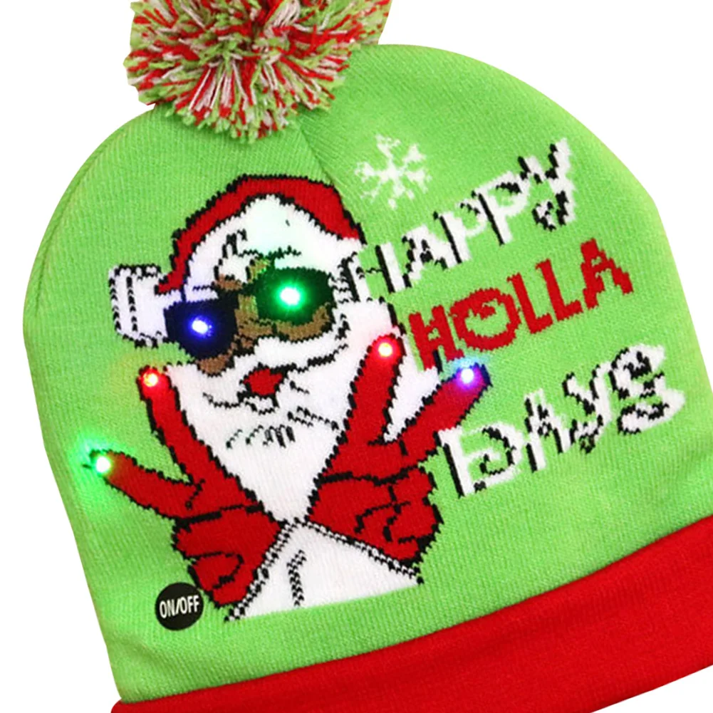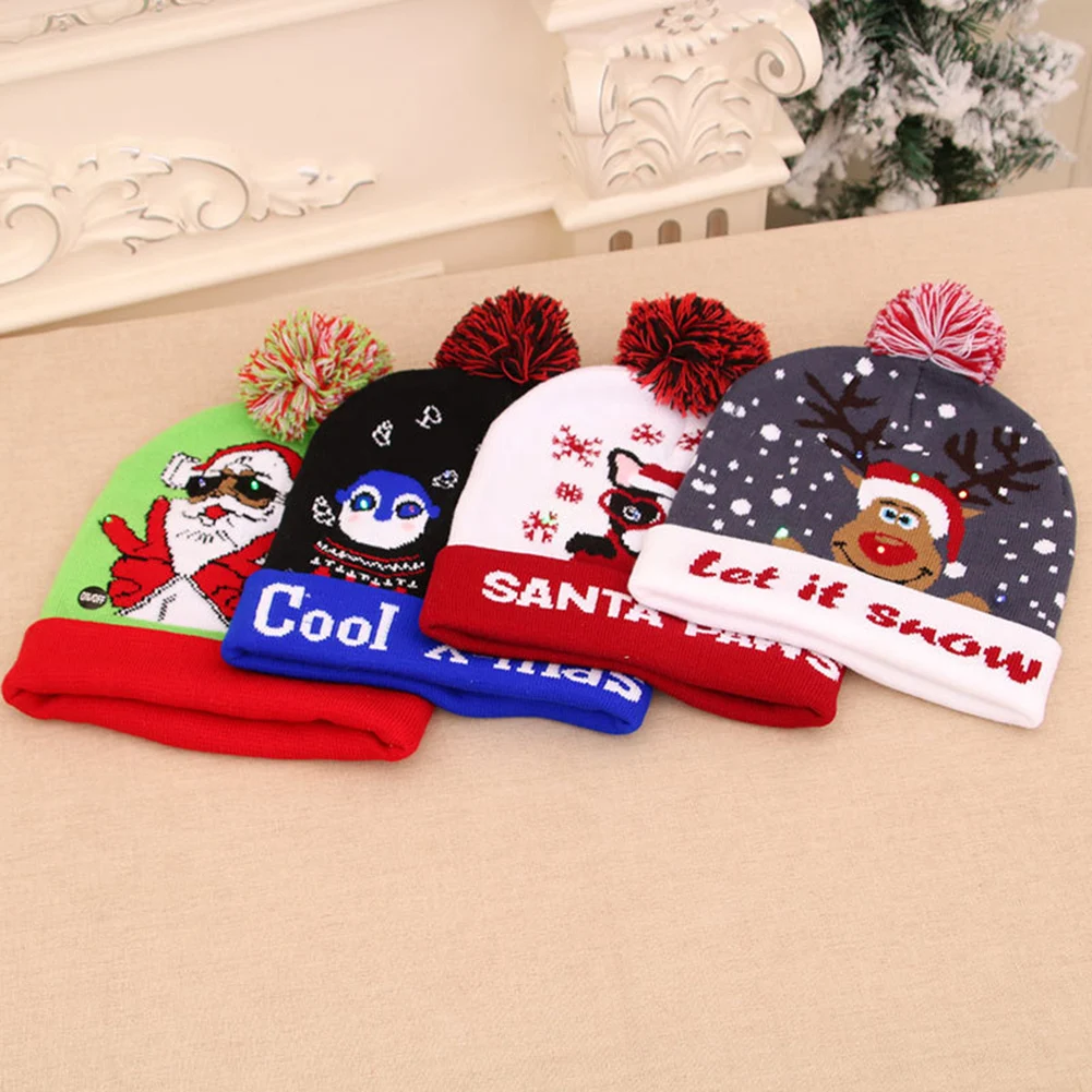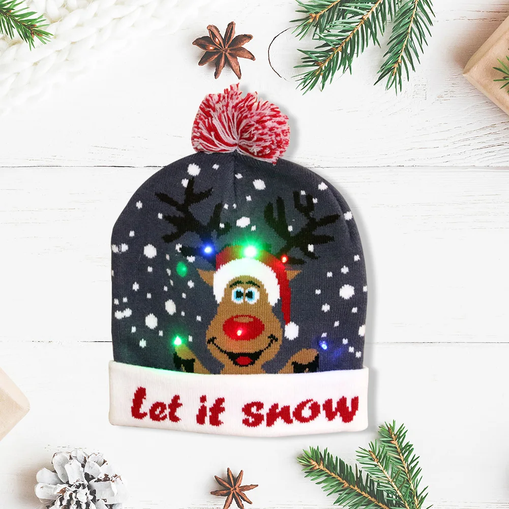 Светодиодные рождественские шапки, свитер, вязаная шапочка, шапка с мультяшным принтом, светящаяся шапочка, светильник ящаяся шапочка, подарки для детей и взрослых, Новогодняя вечеринка