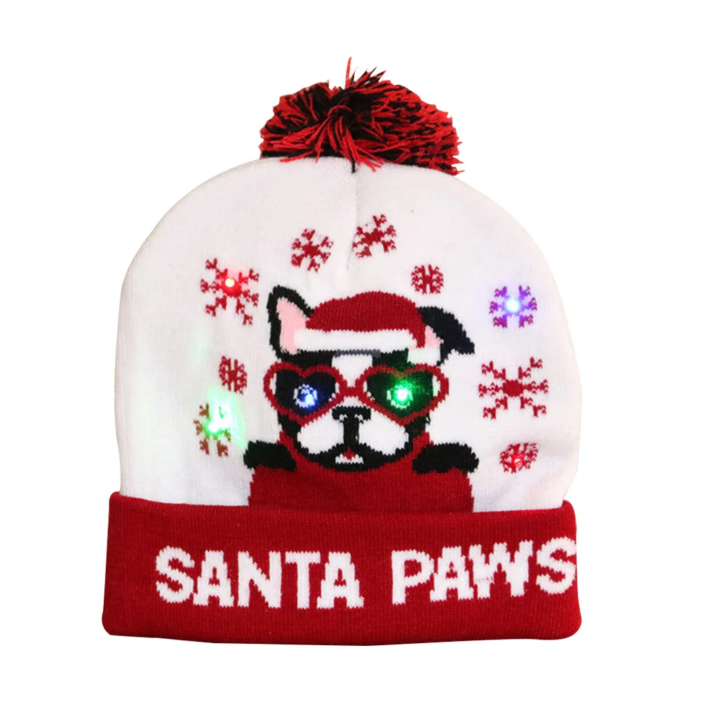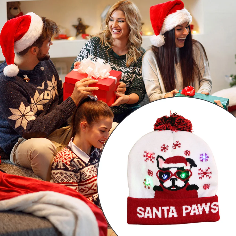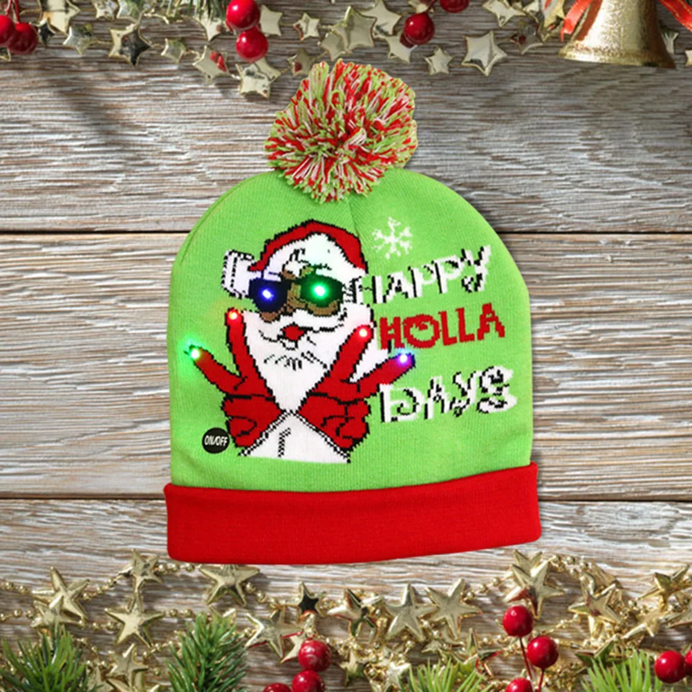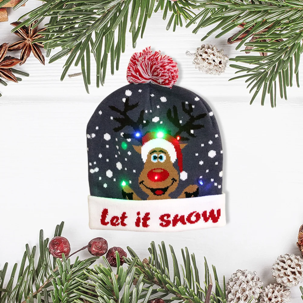 Светодиодные рождественские шапки, свитер, вязаная шапочка, шапка с мультяшным принтом, светящаяся шапочка, светильник ящаяся шапочка, подарки для детей и взрослых, Новогодняя вечеринка