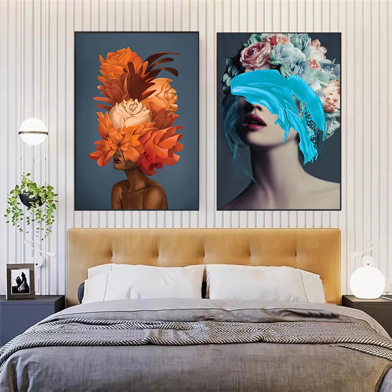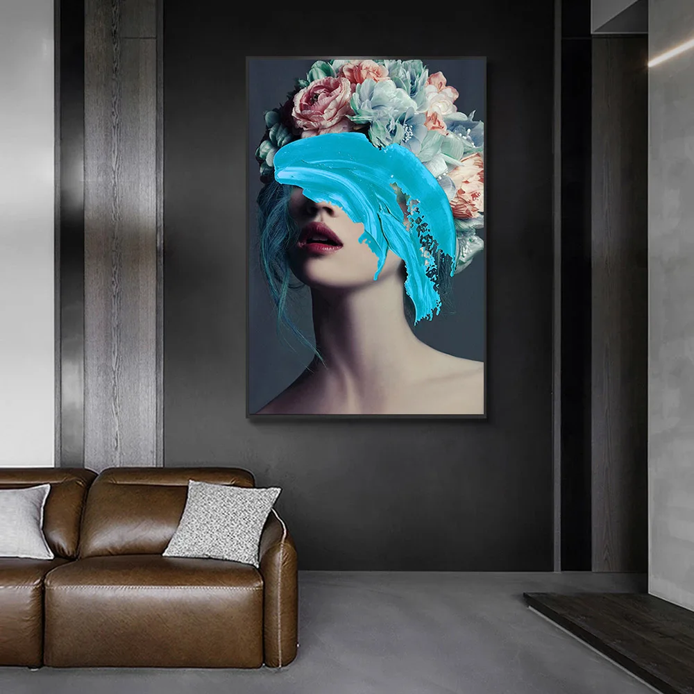 Современная картина маслом на холсте, принт цветов на голове с золотом, Женский постер в скандинавском стиле, Настенная картина для гостиной, домашний декор
