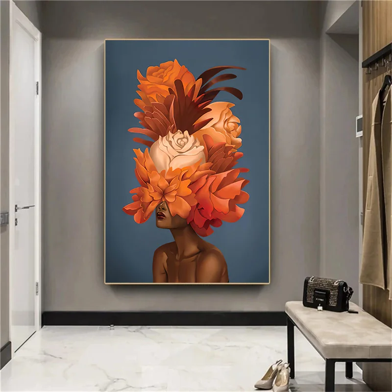 Современная картина маслом на холсте принт цветок на голове с золотом женский скандинавский плакат настенная художественная картина для гостиной домашний декор