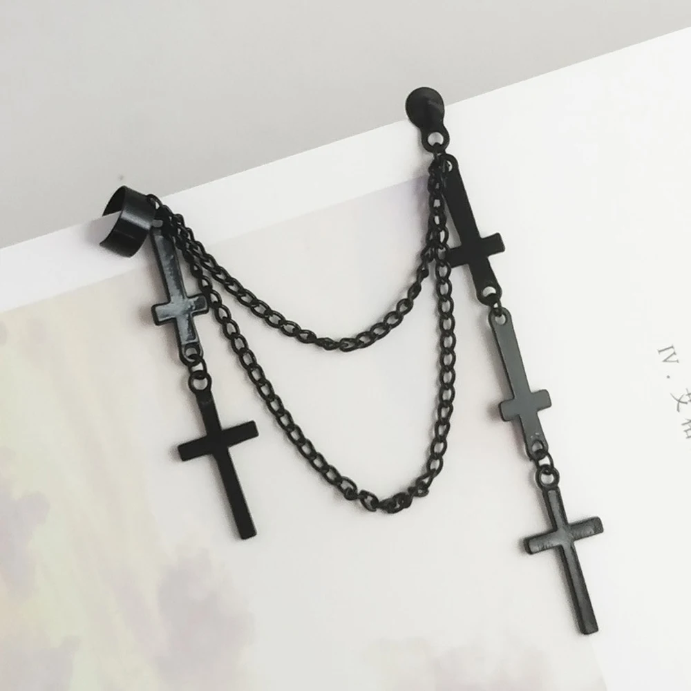 2021 Новое поступление модные ретро черные серьги с крестом Индивидуальные Женские многослойные серьги с кисточками в стиле хип-хоп оптовая продажа ювелирных изделий