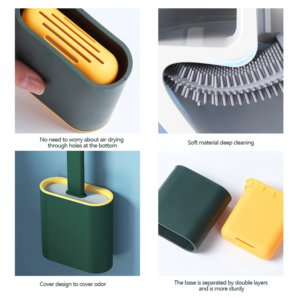Щетка для унитаза с защитой от протечек и основанием, силиконовая м...