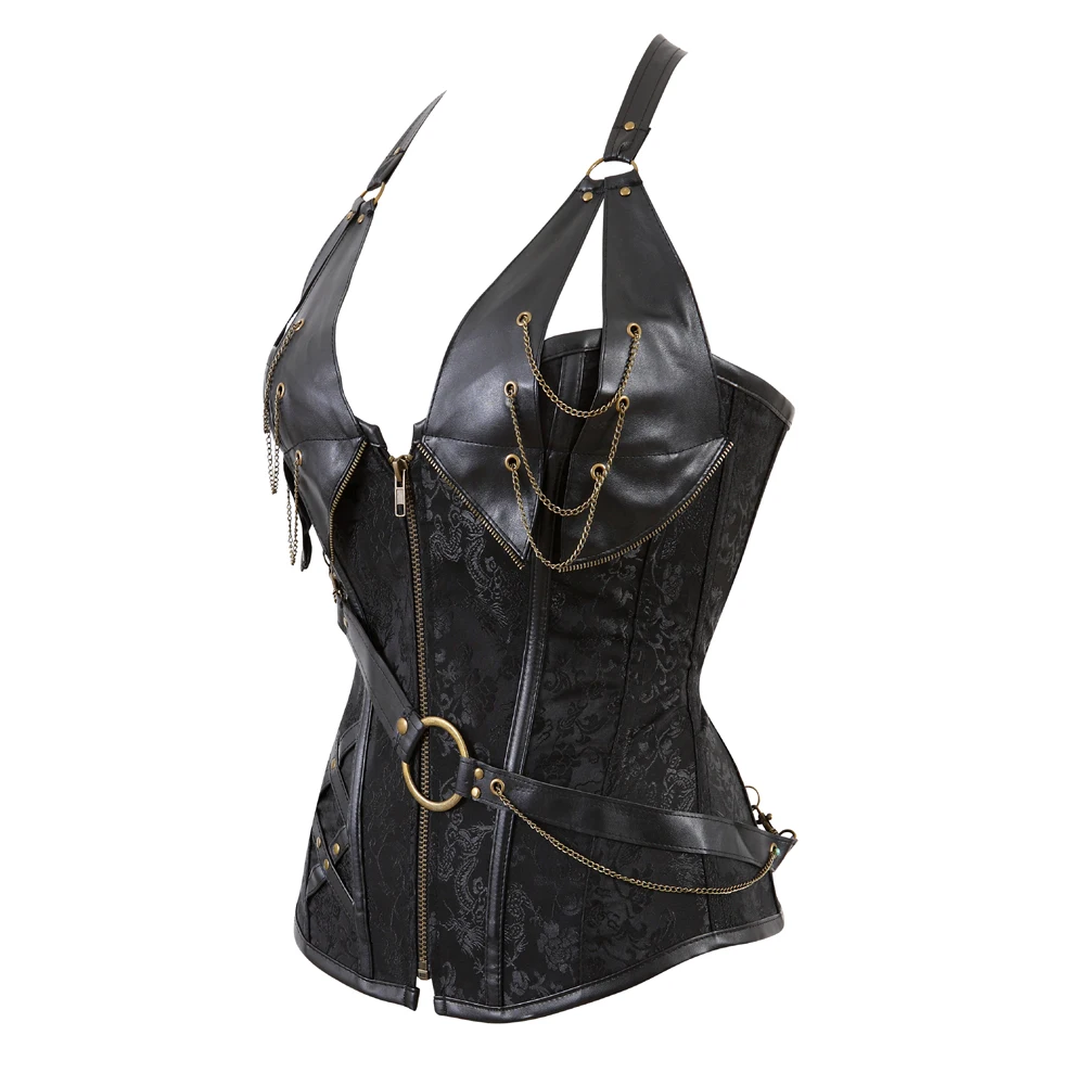 Платье-корсет, одежда в стиле стимпанк, винтажный жилет, готический корсет из искусственной кожи, высокая низкая Асимметричная юбка-корсет, черный, коричневый, размера плюс