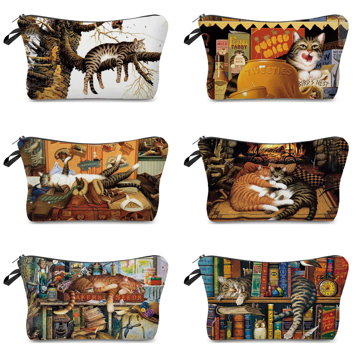 Косметичка с рисунком кота и масляной живописи, модные косметички в...