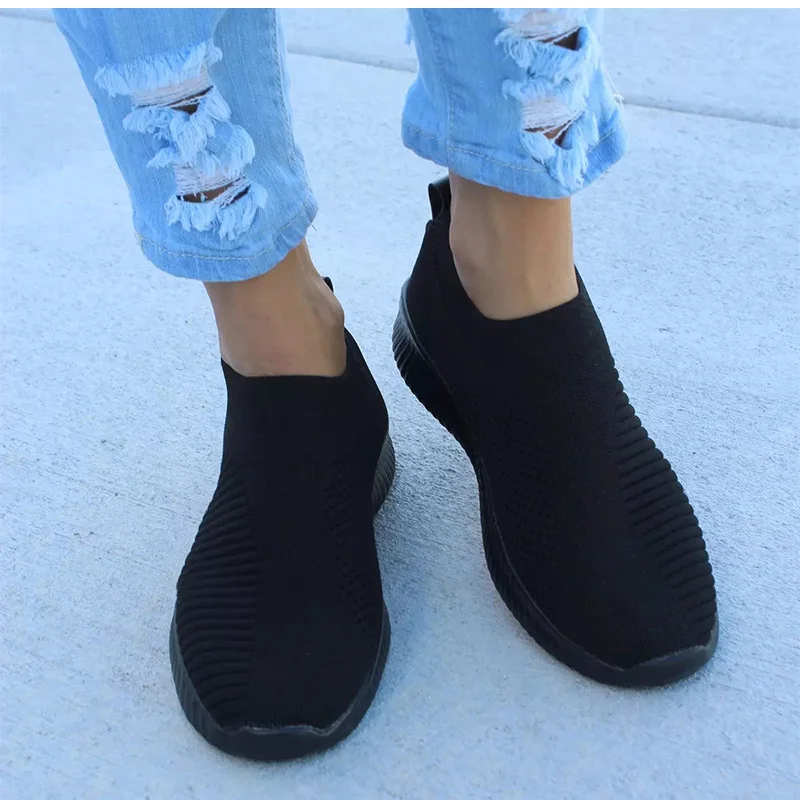 Кроссовки-носки женские вязаные, лоферы, без застежки, плоская подошва, прогулочная обувь, большие размеры, весна-лето