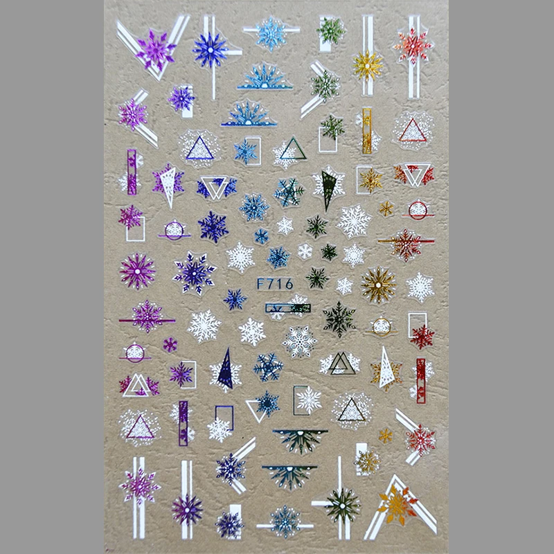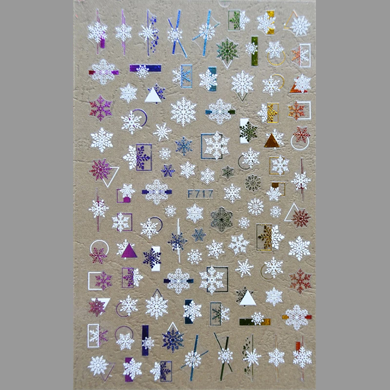 3D рождественские наклейки для украшения ногтей блестящие золотые белые цветные блестящие геометрические снежинки зимние Слайдеры для ногтей