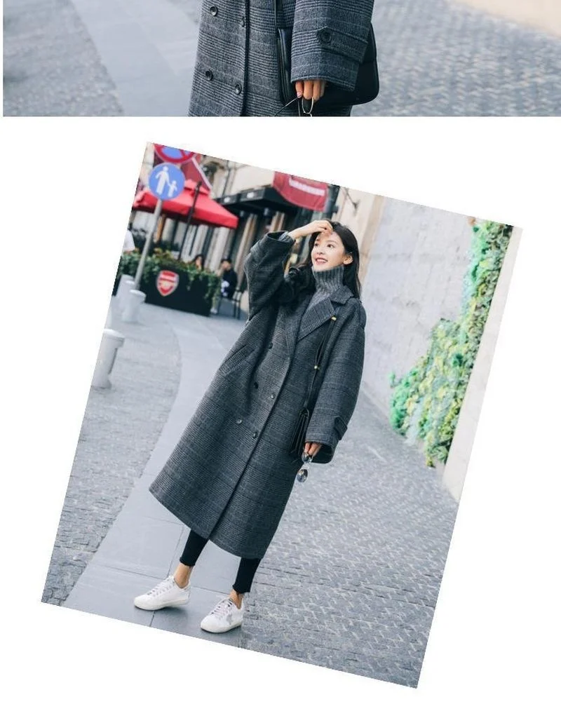 Женская шерстяная куртка, свободная, до щиколотки, в клетку, в Коре...