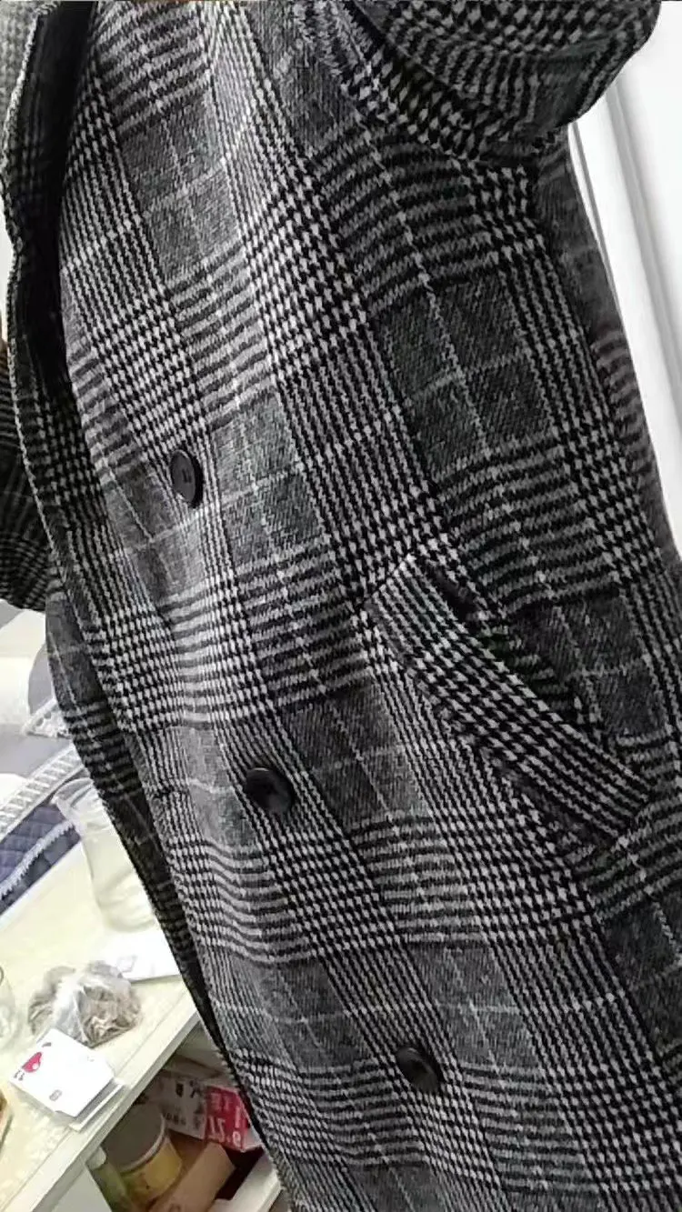 Женское шерстяное пальто в клетку средней длины, корейские большие ...