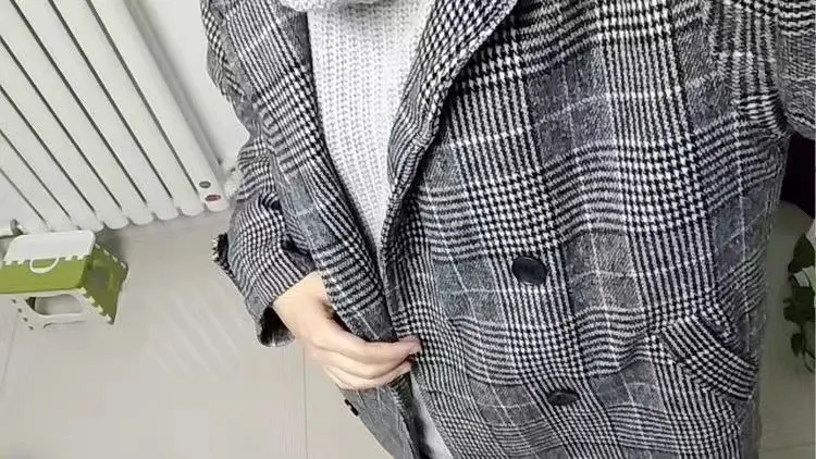 Женская шерстяная куртка, свободная двубортная клетчатая куртка в К...
