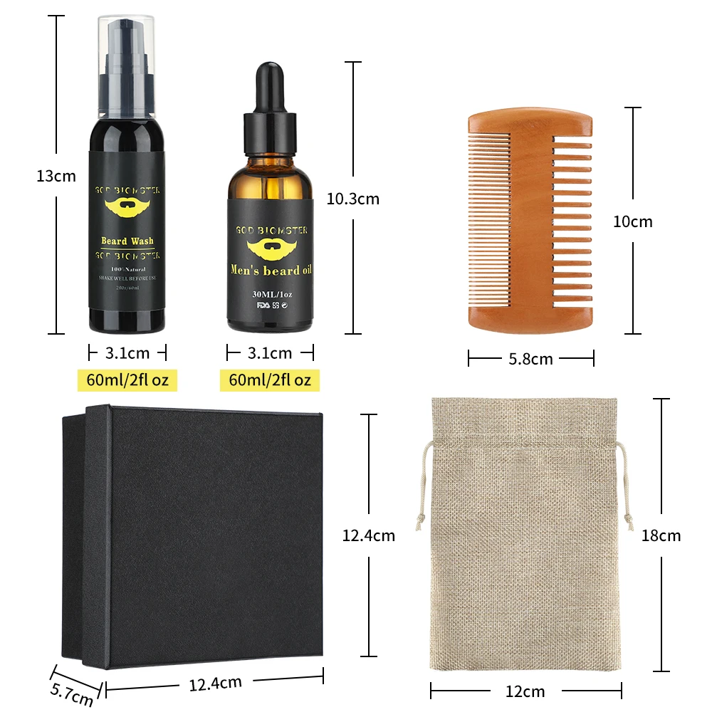 100% чистый натуральный профессиональный мужской набор для ухода за бородой, увлажняющий гребень для мытья бороды, масло для бороды, уход, подарок для здоровья для мужчин