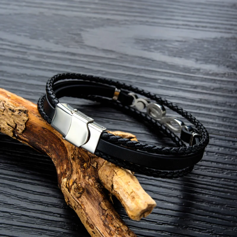 Мужской кожаный браслет, в стиле панк, с нотами из нержавеющей стали