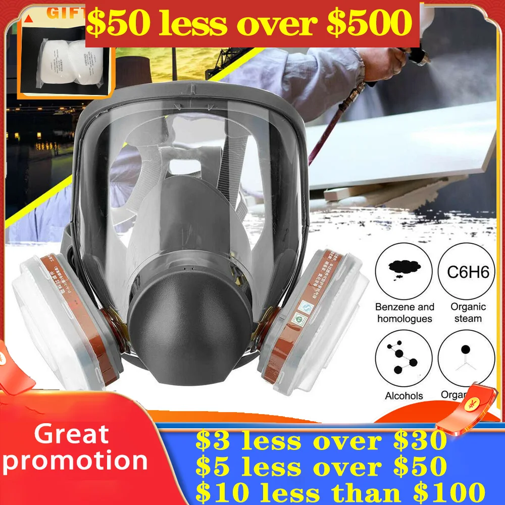 Полнолицевой респиратор 7 в 1, 6800 дюйма, с углеродными фильтрами