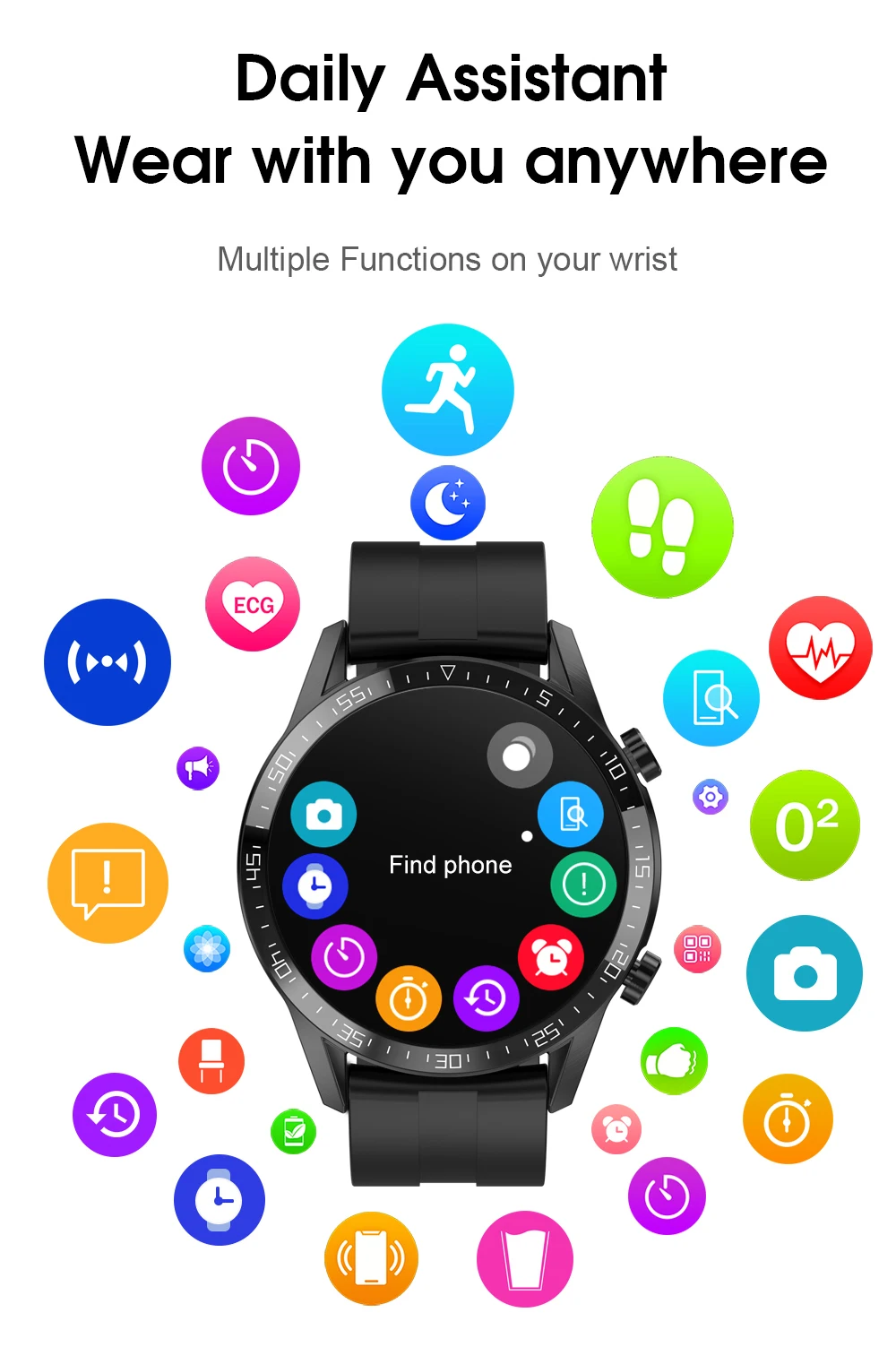 1. Поддержка секундомера + Будильник + передача данных + Наконечники + информация об измерении температуры.2. Уникальный контроль ЭКГ, используя технологию PPG + ECG, занимает всего минуту, чтобы проверить ваше физическое состояние, также поддерживает долю электрокардиограммы.3. 24 часа можно измерить частоту сердечных сокращений, частоту сердечных сокращений в сочетании с интеллектуальным алгоритмом, количественную оценку наукой о больших данных, где вы можете увидеть кривую сердечного ритма в день, кровяное давление, кислород, мониторинг здоровья. Он поддерживает различные модели движений.4. Аккумулятор большой емкости, при нормальном использовании около 7-10 дней, режим ожидания может быть до 60 дней. (Конкретные используемые аппараты могут отличаться, только справочные данные)5. Поддерживайте напоминание о сообщении и не прерывайте, поддержка часов для ключа, чтобы отклонить, не хотите быть открытой, чтобы беспокоить, не беспокоить сообщение, часы остановят завершение сообщения.
