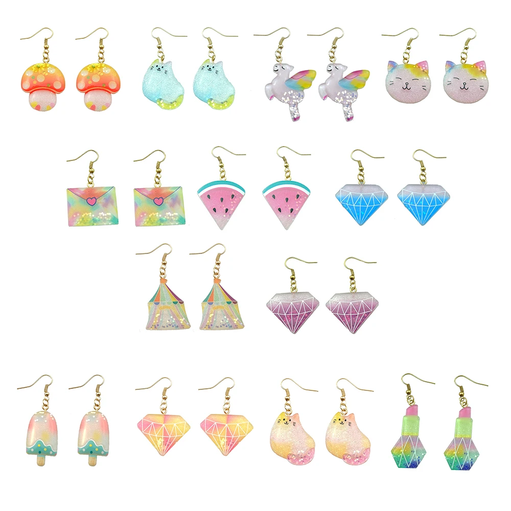 Полимерные серьги-подвески в виде мороженого, грибов, единорога, бриллиантов, кота, арбуза, для женщин и детей, ювелирные изделия ручной работы, подарки сделай сам