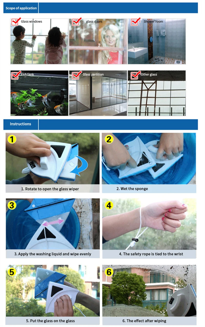 Особенности:Двусторонний магнитный очиститель стекол.Очистите окна быстро и эффективноМойте и высушите окна с обеих сторон одновременно.