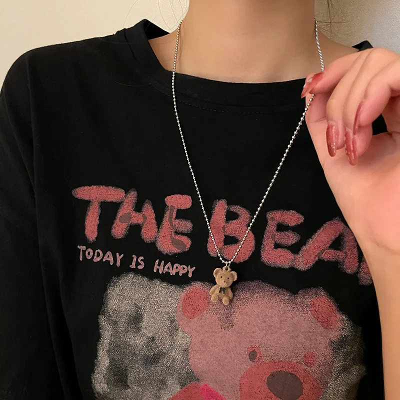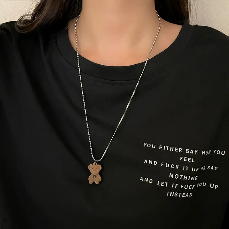 Плюшевый Медведь Пара подвеска модная женская цепочка на свитер Рождественские Длинные ожерелья подарок чокер Изящные аксессуары на шею